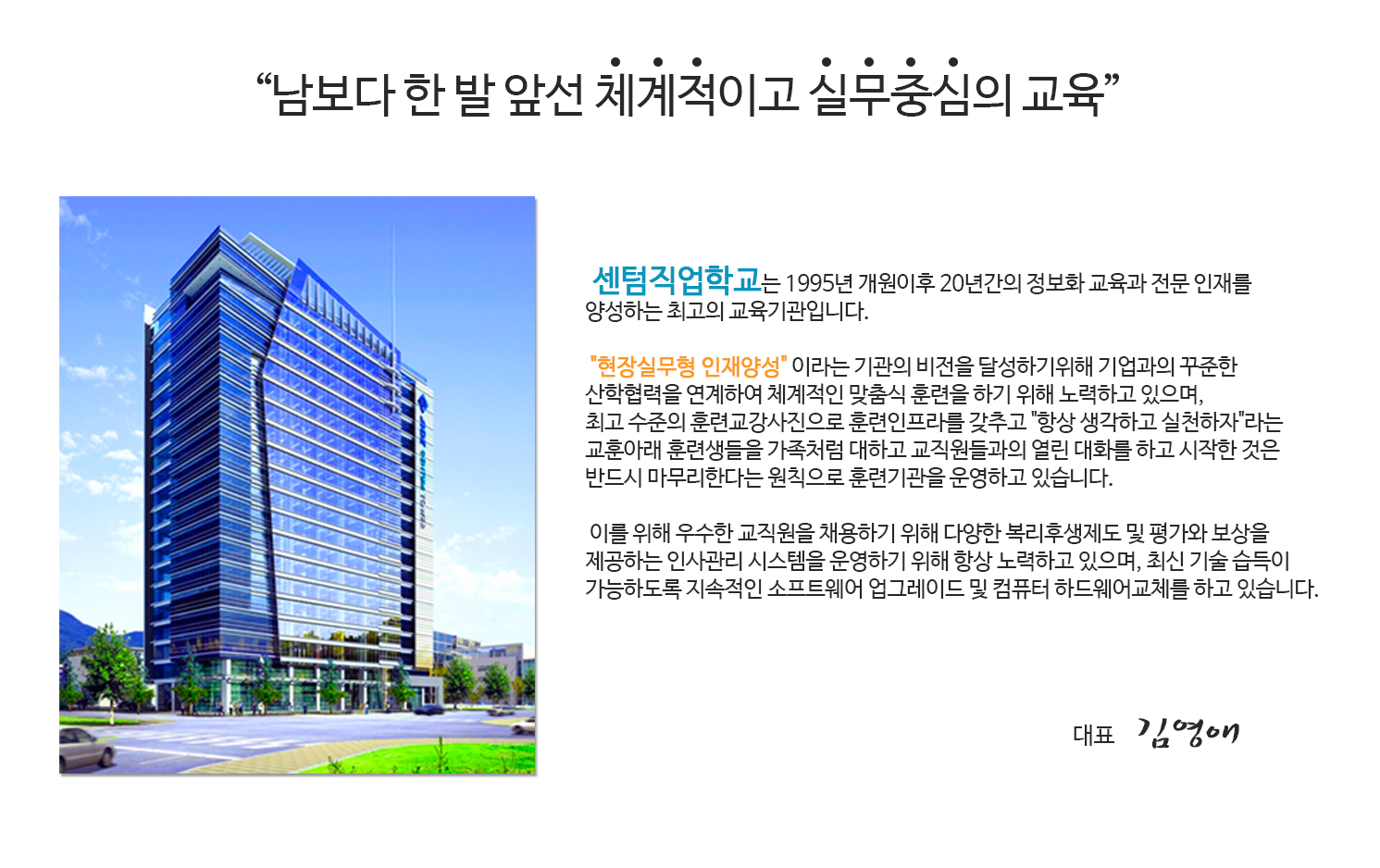 [10월][노동부지정]직업능력개발 훈련시설 지정 승인 (명칭:센텀직업전문학교, 훈련직종 : 프로그래밍분야, 재무및경영, 디자인개발)